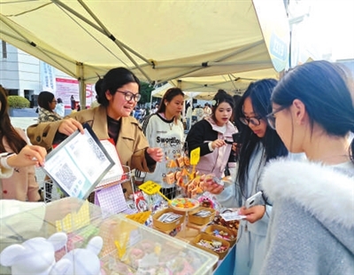 走在创业街区,日用品、美食、手作、3D打印潮玩等货品琳琅满目,叫卖声、欢笑声、讨价还价声此起彼伏。“我们前期做了市场调研,发现身边的同龄人都比较喜欢饰品和玩偶,同时结合随机抽选机制满足消费者追求新奇体验的心理,推出了这个‘盲刮’项目,销售势头很不错。”浙江工商职院影视专业学生庹晶晶很高兴,在她和众多“出摊”的学生团队看来,参与商品展销会,能够亲身体验从商品选型、采购、定价到销售策略的市场运作全过程。